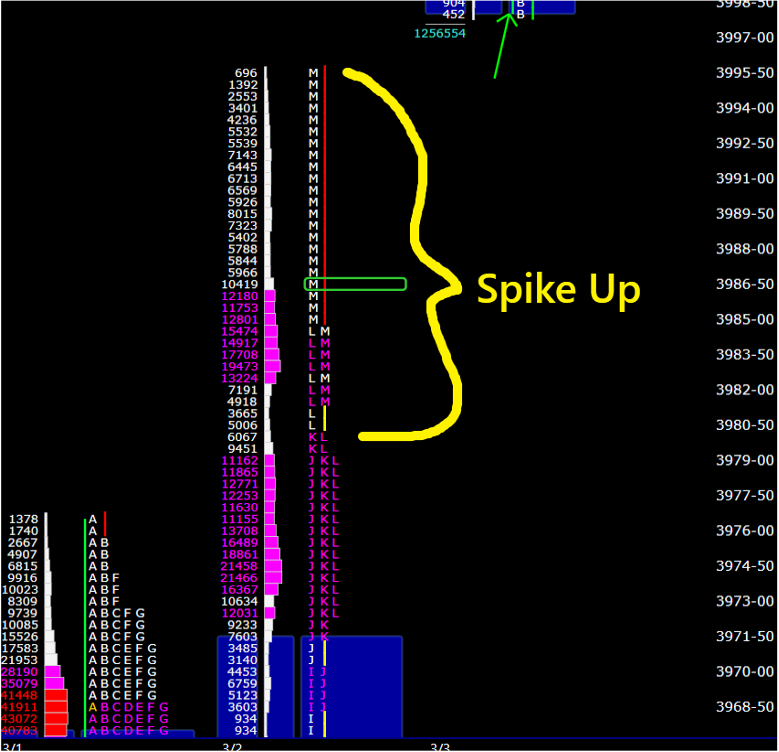 A Spike is defined as single prints at the high or low of the day’s range that are formed in the last hour of the day (3-4 pm ET). The price must close inside the Spike, otherwise it is considered a Liquidation Break or short covering rally.