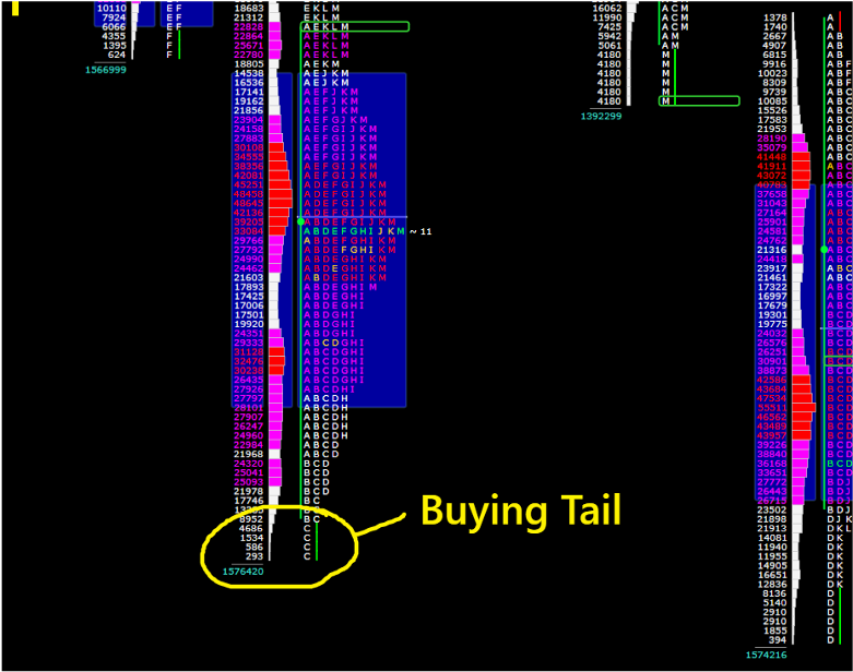Excess at the Bottom of a range, defined as at least two TPO’s (letters) on the ES.